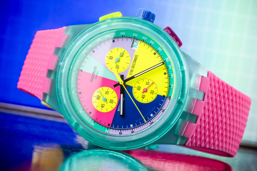 Per questa categoria abbiamo scelto un marchio dalla storia ricca e interessante, che ha molto su cui rifarsi in termini di design. Gli Swatch Neon Flash Arrow mostrano come apparivano gli Swatch colorati negli anni Novanta.