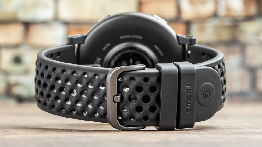 A livello di design non è cambiato poi molto. Sulla lunetta c’è una scala delle 24 ore, il cinturino è in silicone (22 mm, attacco Quick Release) e non mancano i fori di ventilazione. Apprezzo l’addio al sistema in cui un’estremità del cinturino si infilava all’interno e il ritorno al classico: fibbia e due passanti.
