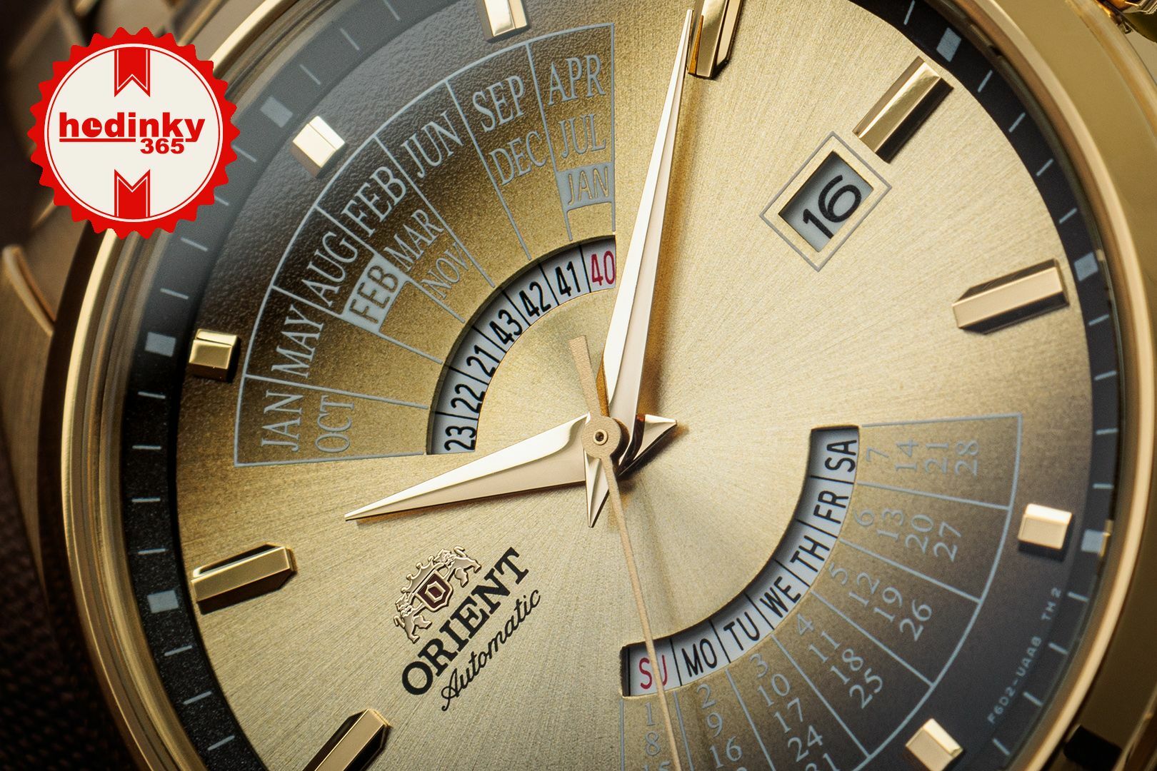 Meccanico a carica automatica. Orient F6D22, Riserva di andamento 40h, 21.600 BPH (3Hz), 22 pietre, Hacking, Possibilità di carico manuale