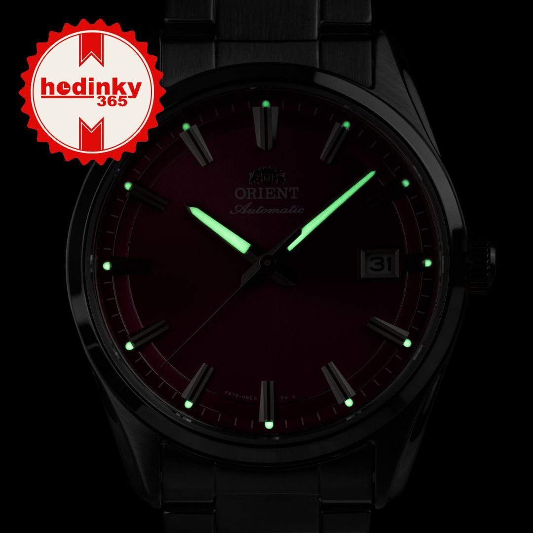 Meccanico a carica automatica. Orient F6722, Riserva di andamento 40h, 21.600 BPH (3Hz), 22 pietre, Hacking, Possibilità di carico manuale