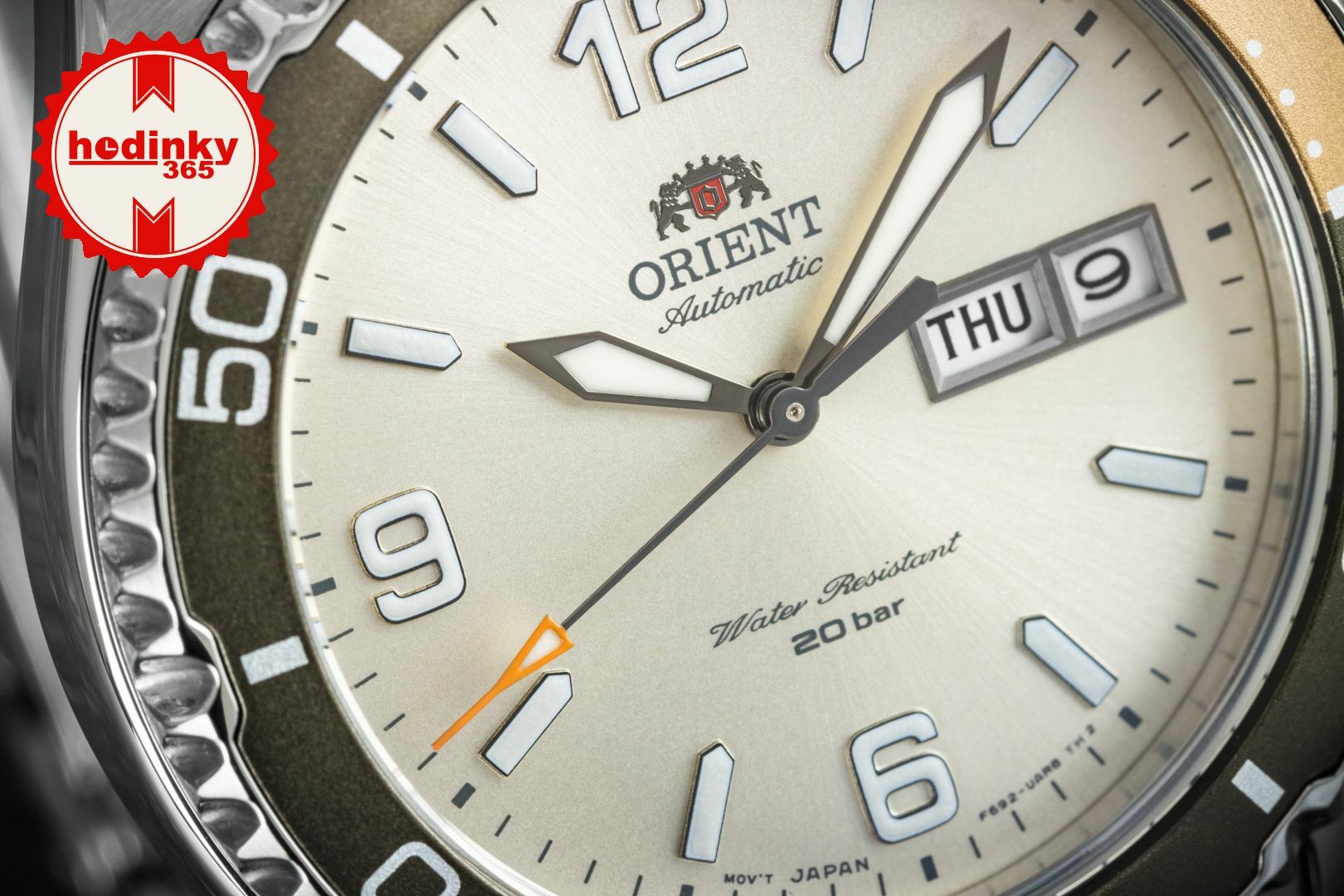 Meccanico a carica automatica. Orient F6922, Riserva di andamento 40h, 22 pietre, Hacking